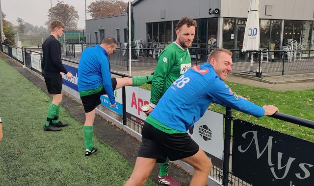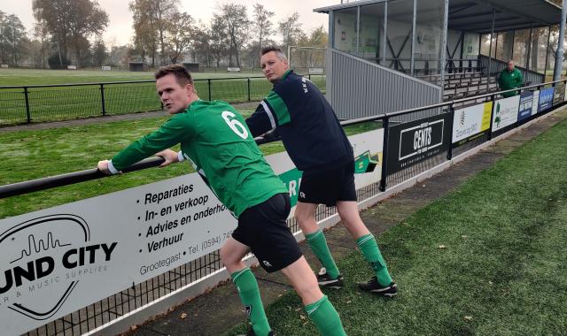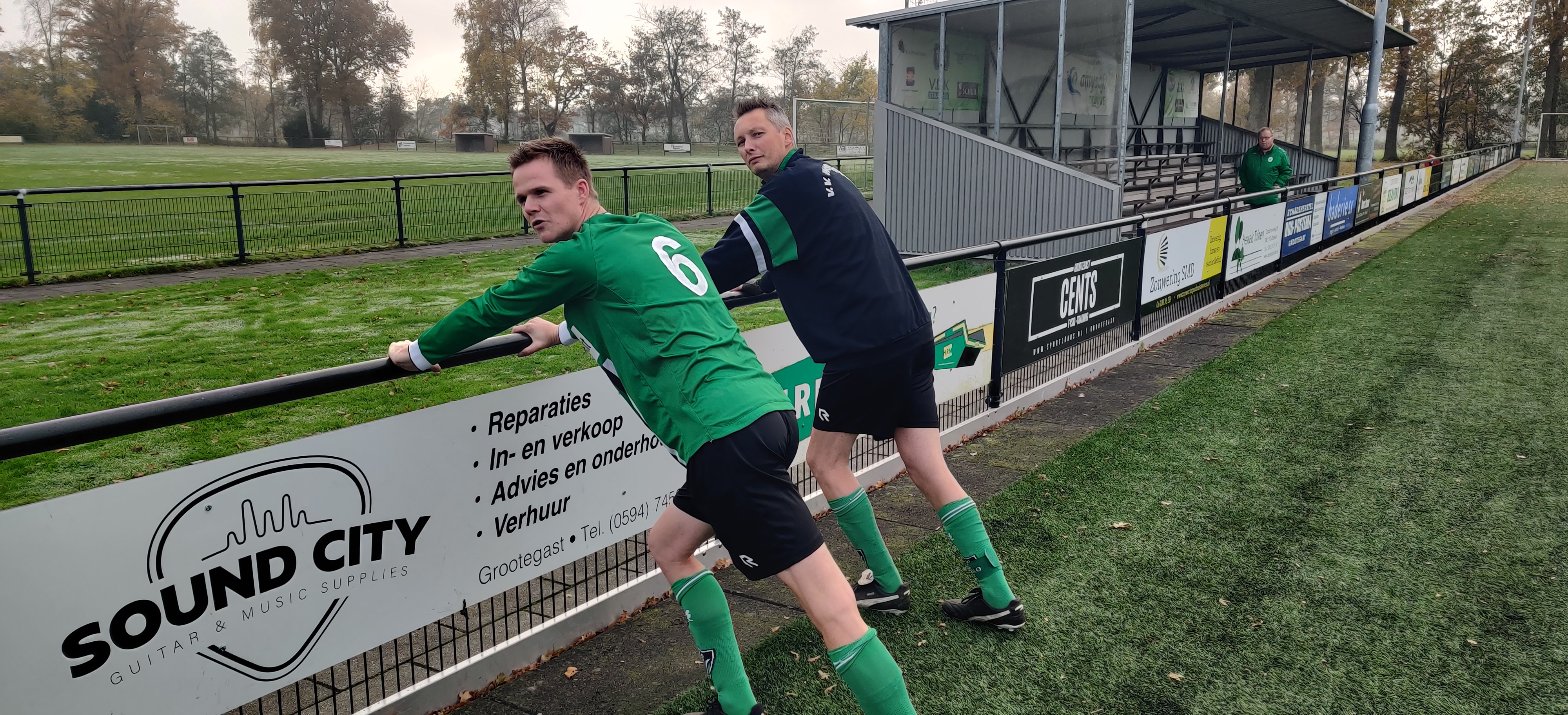 en slagroom. Na deze heerlijke traktatie werd het 2e helft duidelijk zwaarder, maar gelukkig was Herbert er nog even om zijn ploeg aan te moedigen en dit bleek nodig ook. In de allerlaatste minuut zou het toch nog gelijk worden na meerdere goede reddingen van onze kleine Cees, maar door een knikkende enkel bleek de aanvaller van Grootegast niet in staat de bal nog het laatste benodigde tikje mee te geven. Winst op kunstgras, en na de wedstrijd werden we zelfs nog door de tegenstander vertroeteld met heerlijke biertjes. Met 3 punten gevulde zware tas en met appelgebak gevulde zware buiken kon de reis naar Waskemeer beginnen.
