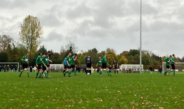 In de tweede helft hadden enkele spelers toch wat last van opkomend maagzuur, maar desalniettemin waren de groenhemden nog steeds de bovenliggende partij. Na slechts vijf minuten kwam de 0–5 hierdoor al op het scorebord. Hayco v/d Veen vormde het eindstation van een aanval waarbij hij de bal op maat kreeg van de vliegensvlugge Martijn Schotanus. Door de vele regen had het veld al aardig op z’n kloten gekregen, en de staat van de grasmat werd er niet beter op toen Bart Roijinga het veld betrad. Het slotakkoord van de wedstrijd kwam op naam van Martijn Schotanus: uit een corner van Bart Roijinga wist hij de bal beheerst binnen te koppen. Beide teams schudden elkaar hierdoor bij een 0–6-eindstand de hand.